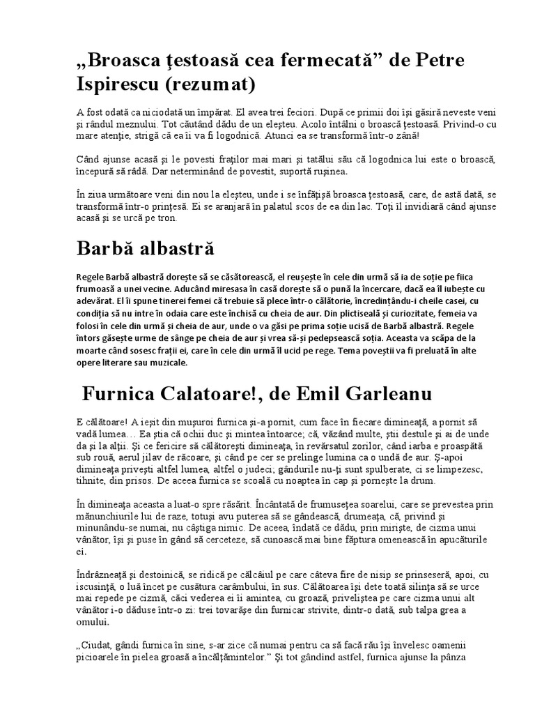 Am și Eu Nevoie De Rezumat Pentru Broască țestoasă Cea Fermecata De Petre Ispirescu Brainly Ro