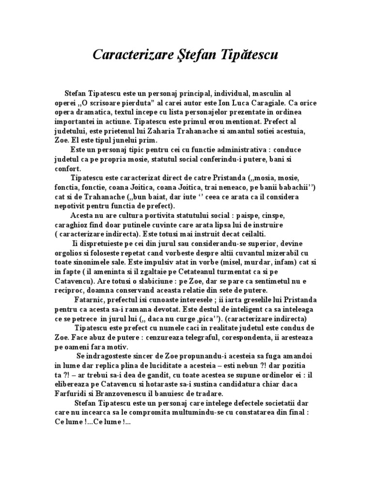 Caracterizare Stefan Tipatescu Atanasoaie Loredana