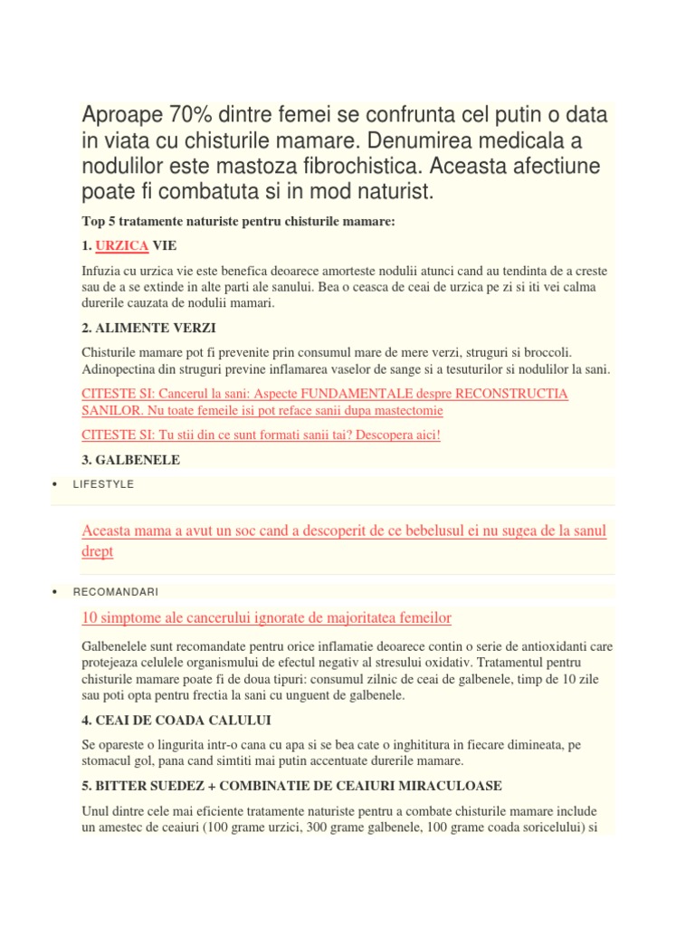 Chisturi Mamare Tratament Naturist