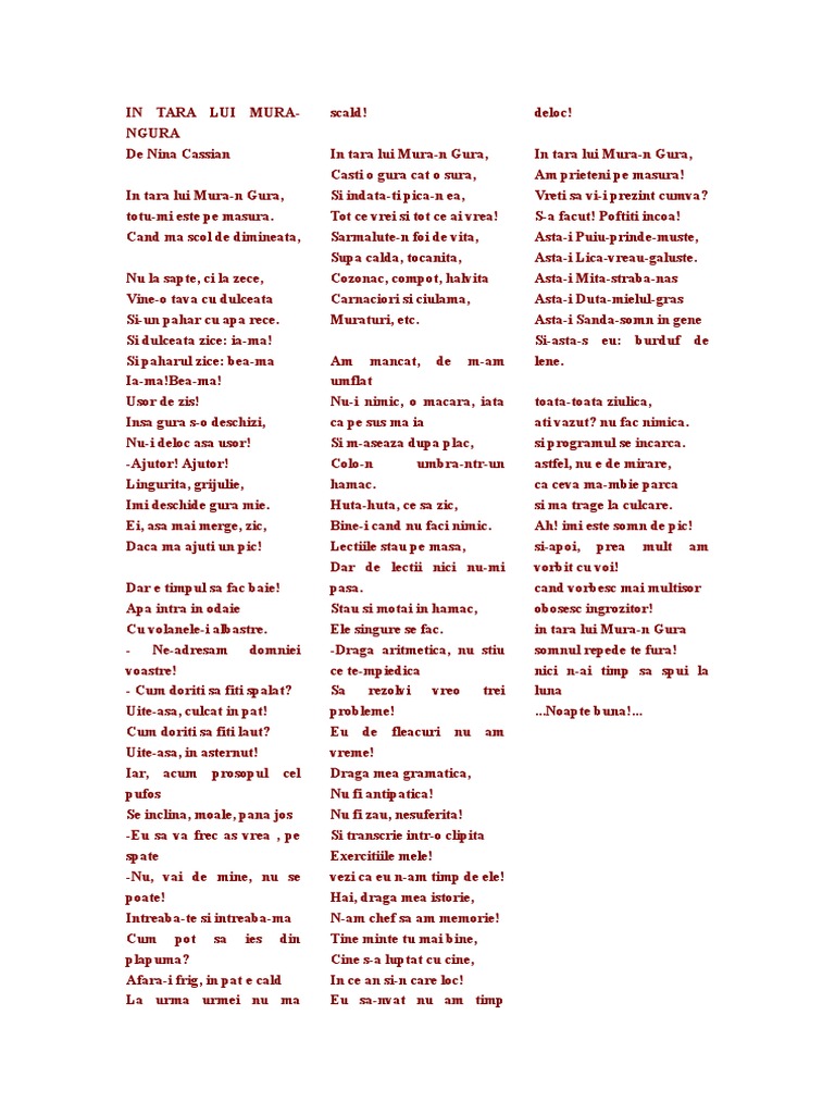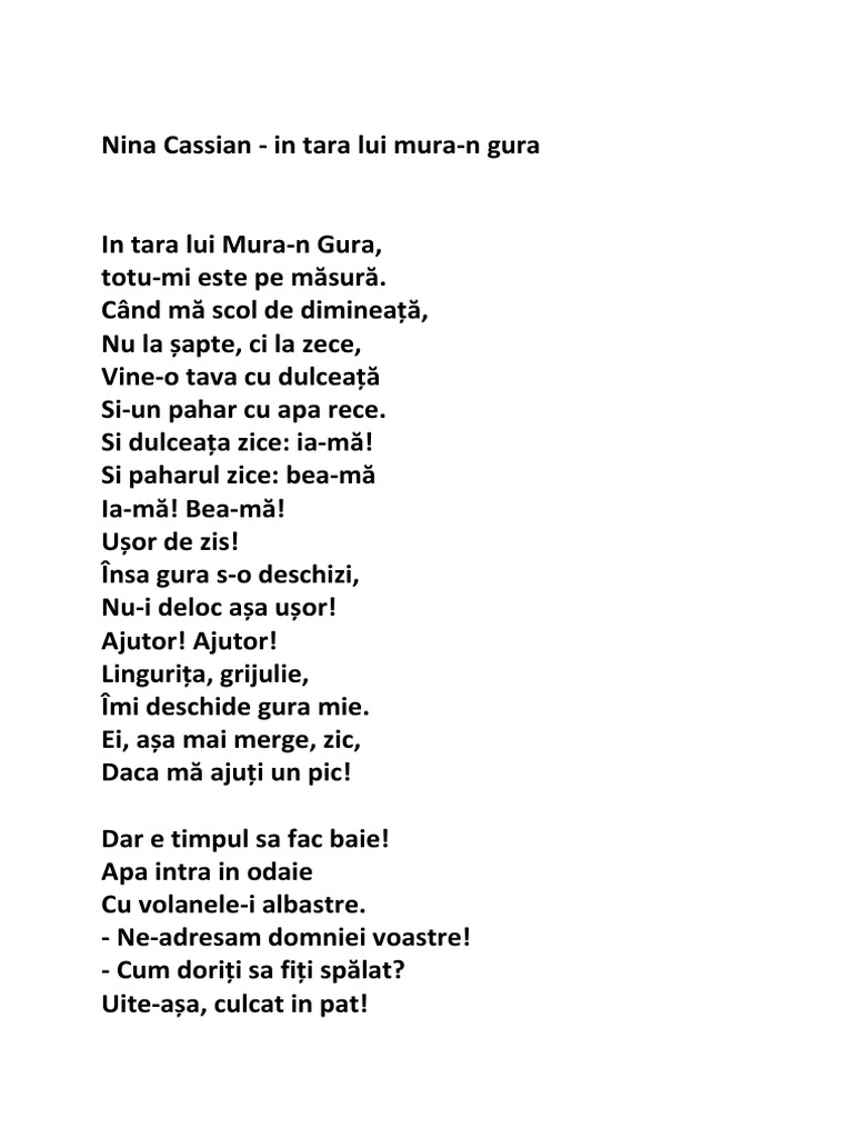 In Tara Lui Mura N Gura De Nina Cassian