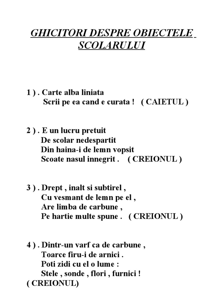 Ghicitori Despre Obiectele Scolarului Doc Marianusss