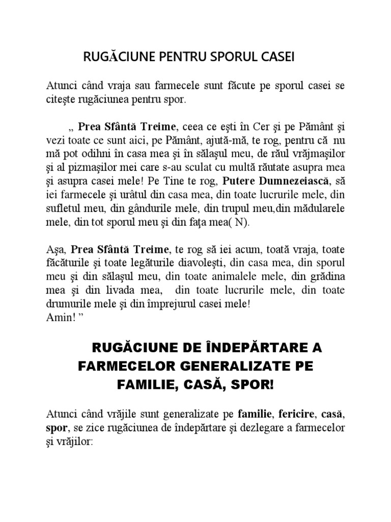 Rugăciuni Pentru Spor De Sanatate Fericire Bani Sporul Casei Docx