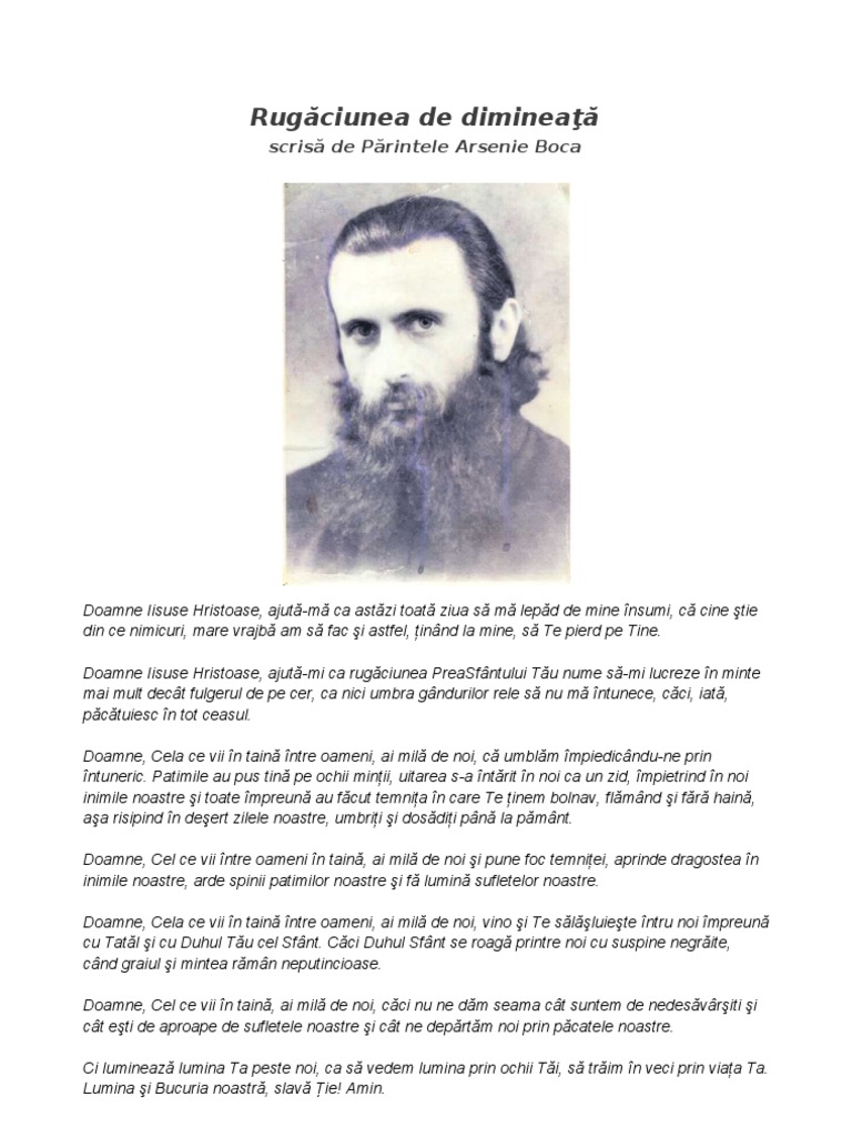 Rugaciunea De Dimineata A Parintelui Arsenie Boca Credinţa Ortodoxă Romană